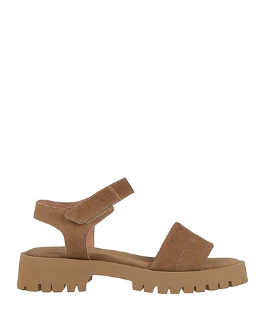 ankle strap sandals, suede, solid color, no appliqués, leather lining, velcro fastening, round toe, square heel, rubber heel, lug sole, contains non-textile parts of animal origin