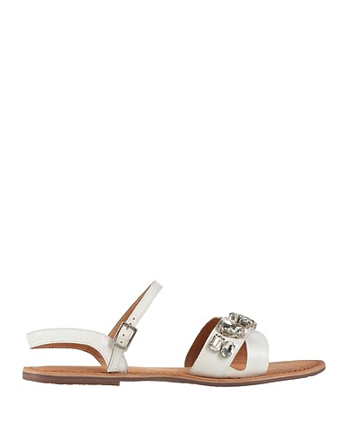 ankle strap sandals, leather, solid color with appliqués, crystals, leather lining, buckle fastening, round toe, flat, rubber cleated sole, contains non-textile parts of animal origin