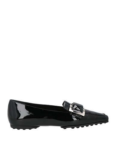 loafers, patent leather, solid color with appliqués, brand logo, embellished, leather lining, pointed toe, flat, pebbled sole, contains non-textile parts of animal origin
