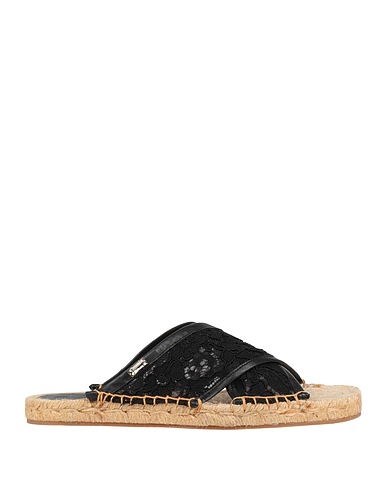espadrille sandals, lace, leather, solid color, embellished, unlined, round toe, flat, rope sole