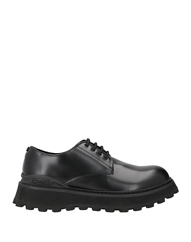 chunky lace-ups, glossed-leather, solid color, brand logo, leather lining, round toe, flatform, rubber cleated sole, contains non-textile parts of animal origin