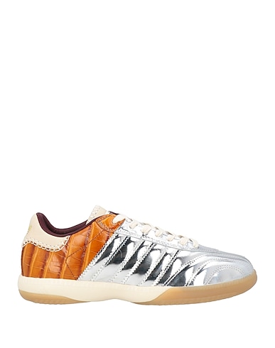 low-top sneakers, adidas samba, leather, metallic, multicolor, brand logo, fully lined, lace-up, round toe, rubber cleated sole, contains non-textile parts of animal origin