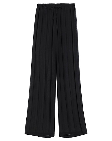 crepe, pleated, solid color, high waisted, relaxed fit, drawstring fastening, without pockets, dry clean, do not bleach, do not tumble dry, do not iron, wide-leg pants