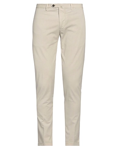 plain weave, brand logo, solid color, mid rise, belt loops, tapered leg, regular fit, zipper closure, 1 button, cuffed hems, multipockets, stretch, chinos