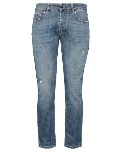 denim, faded, brand logo, solid color, medium wash, mid rise, belt loops, straight leg, regular fit, button closing, five pockets, stretch, straight-leg model