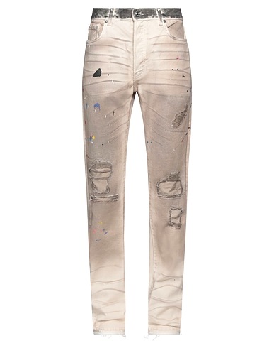 gabardine, distressed, faded, brand logo, solid color, mid rise, straight leg, regular fit, button fastenings, multipockets, dry clean, casual pants