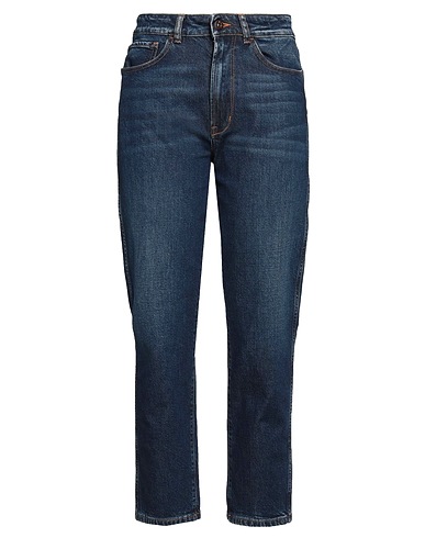 denim, faded, no appliqués, solid color, dark wash, low-crotch, slim fit, zipper fastening, 1 button, multipockets, machine wash or dry clean, do not bleach, tumble dry, tapered jeans