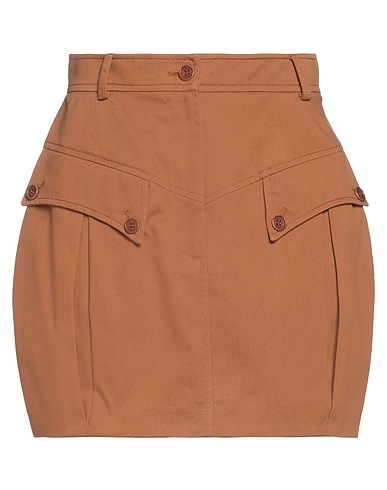 twill, no appliqués, solid color, belt loops, unlined, 1 button, multipockets, stretch, dry clean, do not bleach, do not tumble dry, flared skirt