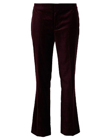 straight-leg pants, velvet, no appliqués, solid color, mid rise, regular fit, hook fastenings, zipper fastening, multipockets, stretch, machine wash or dry clean, tumble dry