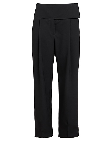 tapered pants, twill, solid color, no appliqués, high waisted, regular fit, snap fastenings, concealed button fastenings, multipockets, dry clean, do not bleach, do not tumble dry, contains non-textile parts of animal origin, this brand runs large