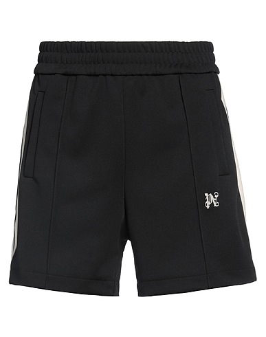 athletic shorts, fleece, two-tone, side seam stripes, brand logo, high waisted, elasticized waist, multipockets, hand wash, do not bleach, do not tumble dry