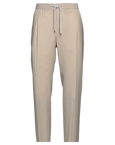 casual pants, cool wool, solid color, darts, high waisted, drawstring waist, tapered leg, regular fit, 1 button, zipper fastening, multipockets, dry clean, do not bleach, do not tumble dry