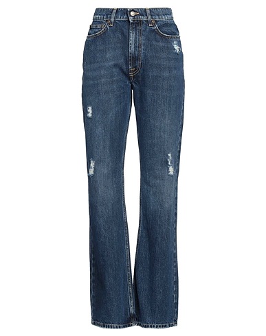 straight-leg jeans, model: khloe woman old glory, denim, faded, distressed, solid color, brand logo, dark wash, regular fit, multipockets, machine wash, do not bleach, do not tumble dry