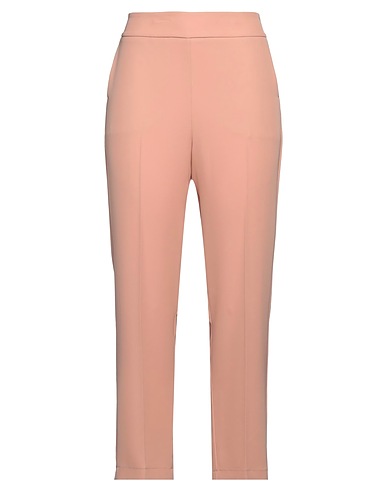 straight-leg pants, crepe, stretchy fabric, solid color, no appliqués, high waisted, elasticized waist, regular fit, slit pockets, machine wash or dry clean, do not bleach, do not tumble dry
