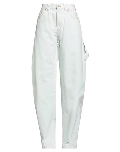 baggy jeans, denim, solid color, brand logo, leather trims, light wash, high waisted, regular fit, zipper fastening, 1 button, multipockets, machine wash, do not bleach, do not tumble dry, contains non-textile parts of animal origin