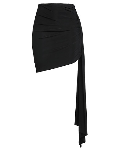 flared skirt, crepe, solid color, draped, elasticized waist, stretch, hand wash or dry clean, do not bleach, do not tumble dry