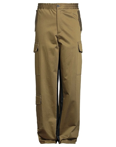 cargo pants, woven, satin, two-tone, draped, high waisted, elasticized waist, relaxed fit, zipper fastening, 1 button, multipockets, dry clean, do not bleach, do not tumble dry