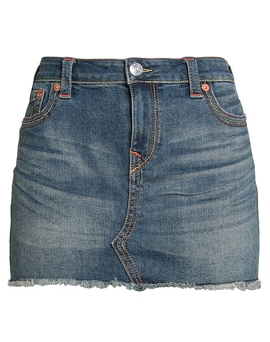 flared skirt, denim, solid color, brand logo, dark wash, belt loops, regular fit, unlined, 1 button, multipockets, machine wash, do not bleach, do not tumble dry