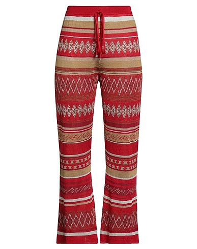 flared pants, jacquard-knit, lightweight knit, multicolor, no appliqués, high waisted, drawstring waist, regular fit, without pockets, hand wash or dry clean, do not bleach, do not tumble dry
