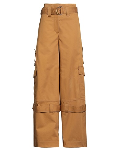 cargo pants, gabardine, solid color, belt, high waisted, belt loops, regular fit, zipper fastening, hook fastenings, multipockets, dry clean, do not bleach, do not tumble dry