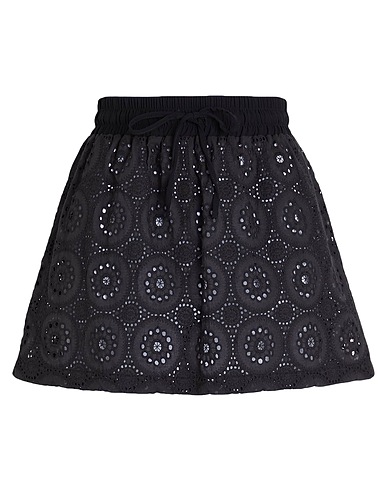 flared skirt, broderie anglaise, solid color, brand logo, drawstring waist, unlined, hand wash or dry clean, do not bleach, do not tumble dry