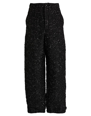 casual pants, jacquard, metallic, solid color, no appliqués, high waisted, drawstring waist, tapered leg, regular fit, zipper fastening, snap fastenings, slit pockets, patch pockets, dry clean, do not bleach, do not tumble dry, do not iron