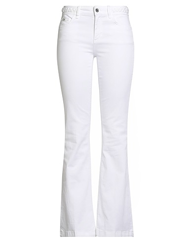 flared jeans, denim, stretchy fabric, solid color, brand logo, colored wash, mid rise, belt loops, slim fit, zipper fastening, 1 button, multipockets, machine wash, do not bleach, do not tumble dry