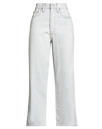 straight-leg jeans, model: ribcage straight , denim, faded, solid color, brand logo, light wash, high waisted, regular fit, button fastenings, five pockets, hand wash or dry clean, do not bleach, tumble dry, this brand runs small