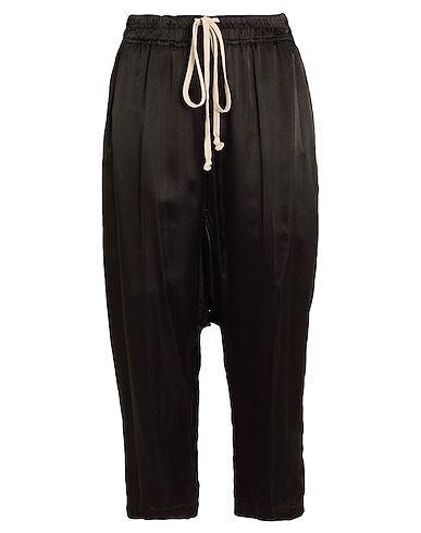 track pants, satin, solid color, no appliqués, low-crotch, drawstring waist, relaxed fit, slit pockets, dry clean, do not bleach, do not tumble dry