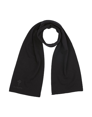 scarf, knitted, lightweight knit, solid color with appliqués, embroidered logo, machine wash, do not bleach, do not tumble dry