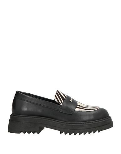 penny loafers, leather, calf hair, zebra-print, no appliqués, leather lining, round toe, low heel, rubber sole, contains non-textile parts of animal origin