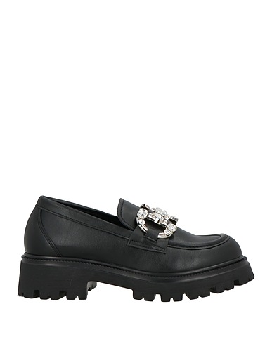 chunky loafers, coated fabric, solid color with appliqués, crystals, leather lining, round toe, square heel, lug sole, contains non-textile parts of animal origin