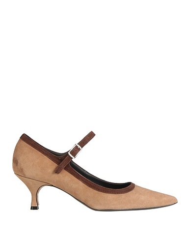 mary jane pumps, suede, two-tone, no appliqués, leather lining, buckle fastening, pointed toe, spool heel, covered heel, rubber sole, contains non-textile parts of animal origin