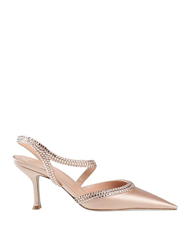 slingback pumps, satin, solid color with appliqués, crystals, elasticized strap, pointed toe, spool heel, leather sole, leather lining, contains non-textile parts of animal origin, go extra glam with chic party accessories for your next event or night out