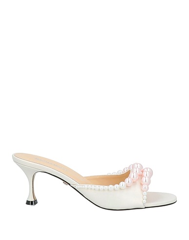 slide sandals, leather, solid color with appliqués, beads, leather lining, round toe, spool heel, leather sole, contains non-textile parts of animal origin