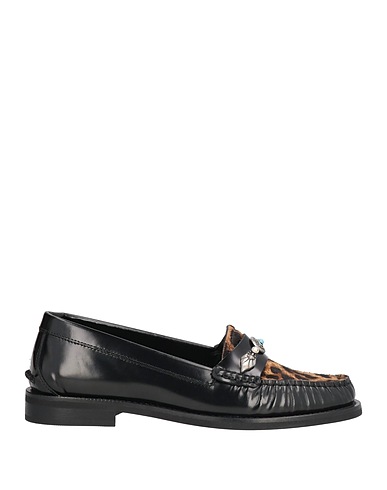 loafers, leather, calf hair, embellished, leopard-print, leather lining, round toe, flat, rubber sole, contains non-textile parts of animal origin
