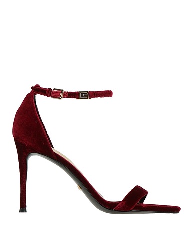 ankle strap sandals, velvet, brand logo, solid color, leather lining, buckle-fastening ankle strap, round toe, stiletto heel, rubber sole, contains non-textile parts of animal origin