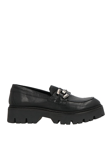 chunky loafers, leather, solid color with appliqués, embellished, leather lining, round toe, flat, lug sole, contains non-textile parts of animal origin