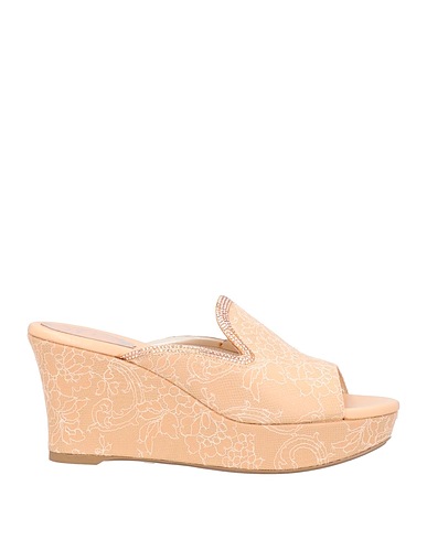 slide sandals, lace, solid color with appliqués, crystals, platform, leather lining, round toe, wedge heel, covered wedge, rubber sole, contains non-textile parts of animal origin