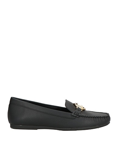 loafers, synthetic material, hammered, solid color with appliqués, brand logo, fully lined, round toe, flat, rubber sole