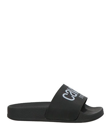 pool slides, rubber, solid color with print, brand logo, rubber lining, round toe, flat, rubber cleated sole