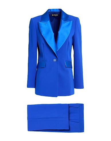 pants set, crepe, twill, solid color, no appliqués, lapel collar, single-breasted , long sleeves, shoulder pads, fully lined, 1 button, flap pockets, high waisted, machine wash or dry clean, do not bleach, do not tumble dry