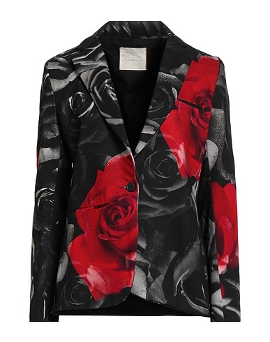 single-breasted blazer, twill, floral-print, no appliqués, lapel collar, long sleeves, partially lined, 1 button, one chest pocket, slit pocket, dry clean, do not bleach, do not tumble dry