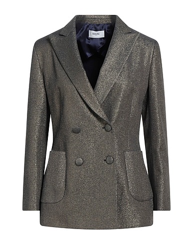 double-breasted blazer, woven, metallic, two-tone, no appliqués, lapel collar, long sleeves, partially lined, button fastenings, patch pockets, rear slit, dry clean, do not bleach, do not tumble dry