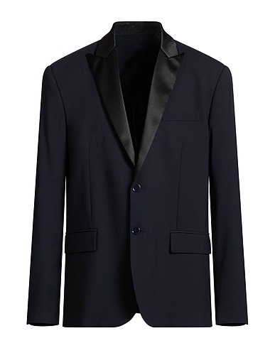 single-breasted blazer, cool wool, stretchy fabric, solid color, satin trims, brand logo, lapel collar, long sleeves, fully lined, button fastenings, one chest pocket, flap pocket, dry clean, do not bleach, do not tumble dry