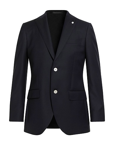 single-breasted blazer, cool wool, solid color, brooch, lapel collar, long sleeves, fully lined, button fastenings, flap pockets, welt pocket, dual back vents, dry clean, do not bleach, do not tumble dry