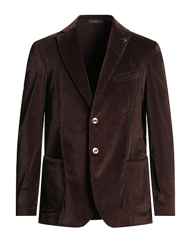 single-breasted blazer, corduroy, solid color, brooch, lapel collar, long sleeves, buttoned cuffs, partially lined, button fastenings, one chest pocket, patch pockets, dual back vents, dry clean, do not bleach, do not tumble dry, do not iron