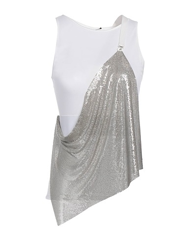 top, jersey, chainmail, solid color with appliqués, draped, detachable application, crewneck, sleeveless, do not dry clean, do not bleach, do not tumble dry, amp up the glamour with chic designer party outfits for your next event or fun night out