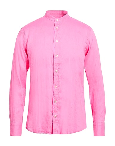 regular-fit shirt, linen, solid color, no appliqués, mandarin collar, long sleeves, buttoned cuffs, button fastenings, machine wash or dry clean, do not bleach, tumble dry