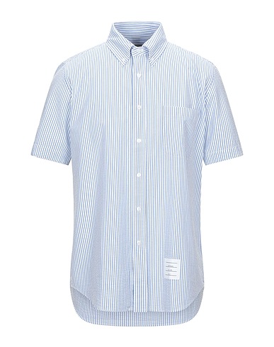 regular-fit shirt, seersucker, striped, brand logo, button-down collar, short sleeves, button fastenings, one chest pocket, machine wash or dry clean, do not bleach, do not tumble dry